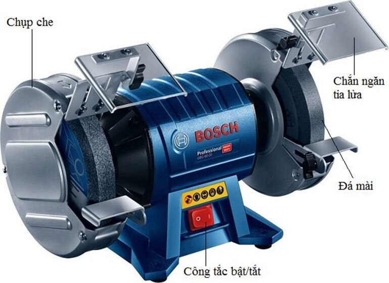 Trong đó, các chi tiết chủ yếu của máy mài 2 đá gồm: